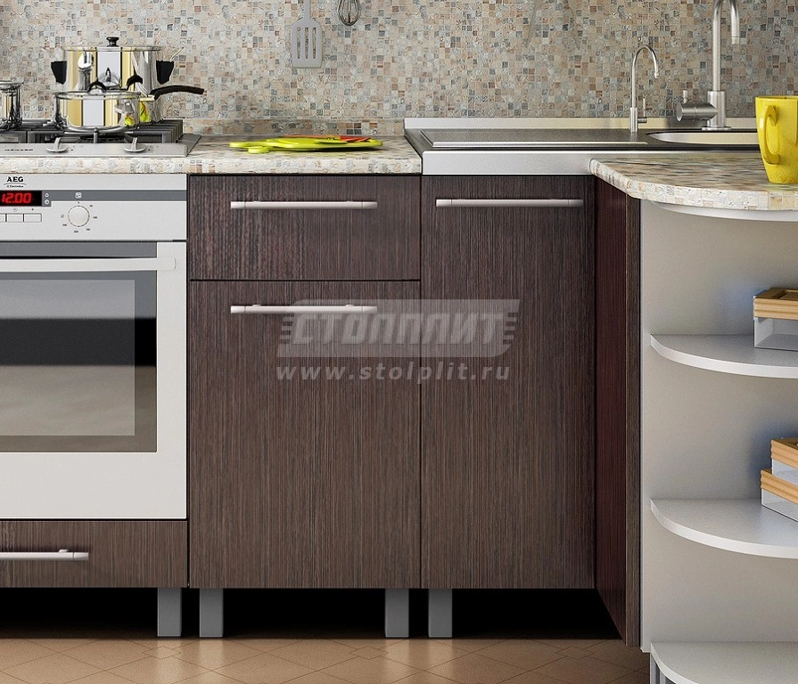 Цена указана за комплект столов и полок. Дополнительно рекомендуется приобрести столешницу, стеновую панель, мойку и сушку.