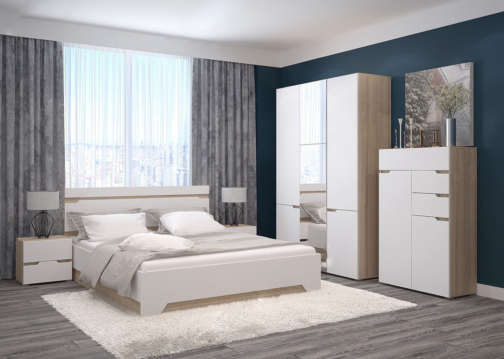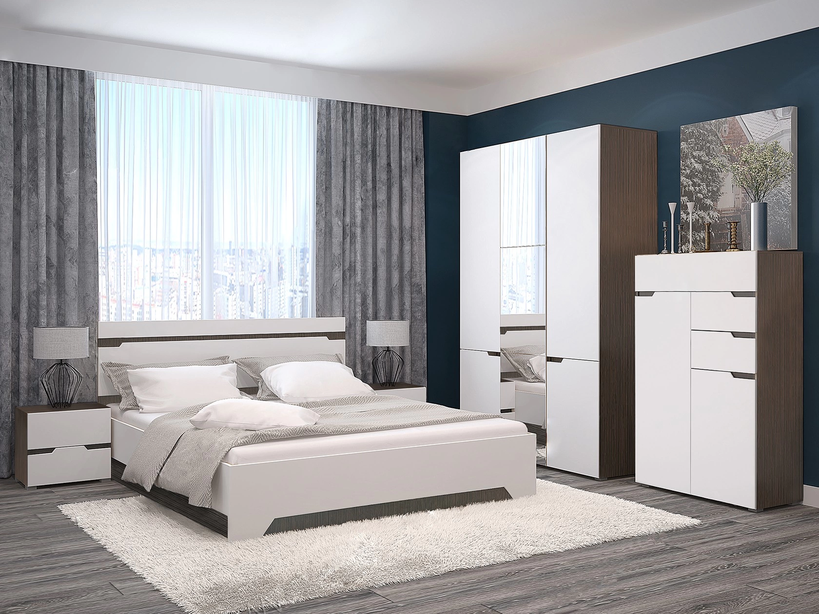 Спальня Амстердам - это простота и лаконичность, которая особенно подходит для городских квартир. Все это делает интерьер вашей спальни эргономичной и функциональной, но вместе с тем не лишенной удобства и комфорта. Фасады матовые. Изготовлены в пленке с эффектом Soft Touch. Это создает ощущение мягкости и бархатистости на ощупь!