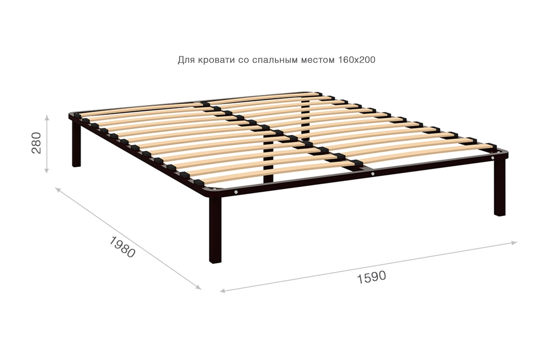 - Основание: Березовые ламели из 7-слойной фанеры на металлическом каркасе и 5 опорах