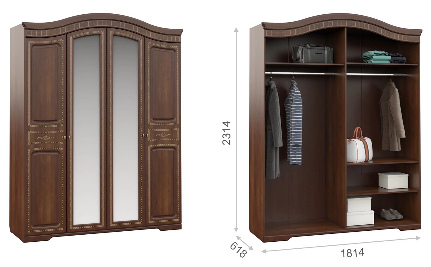- Шкаф 4-х Створчатый: Ширина 1814 мм х Глубина 618 мм x Высота 2314 мм