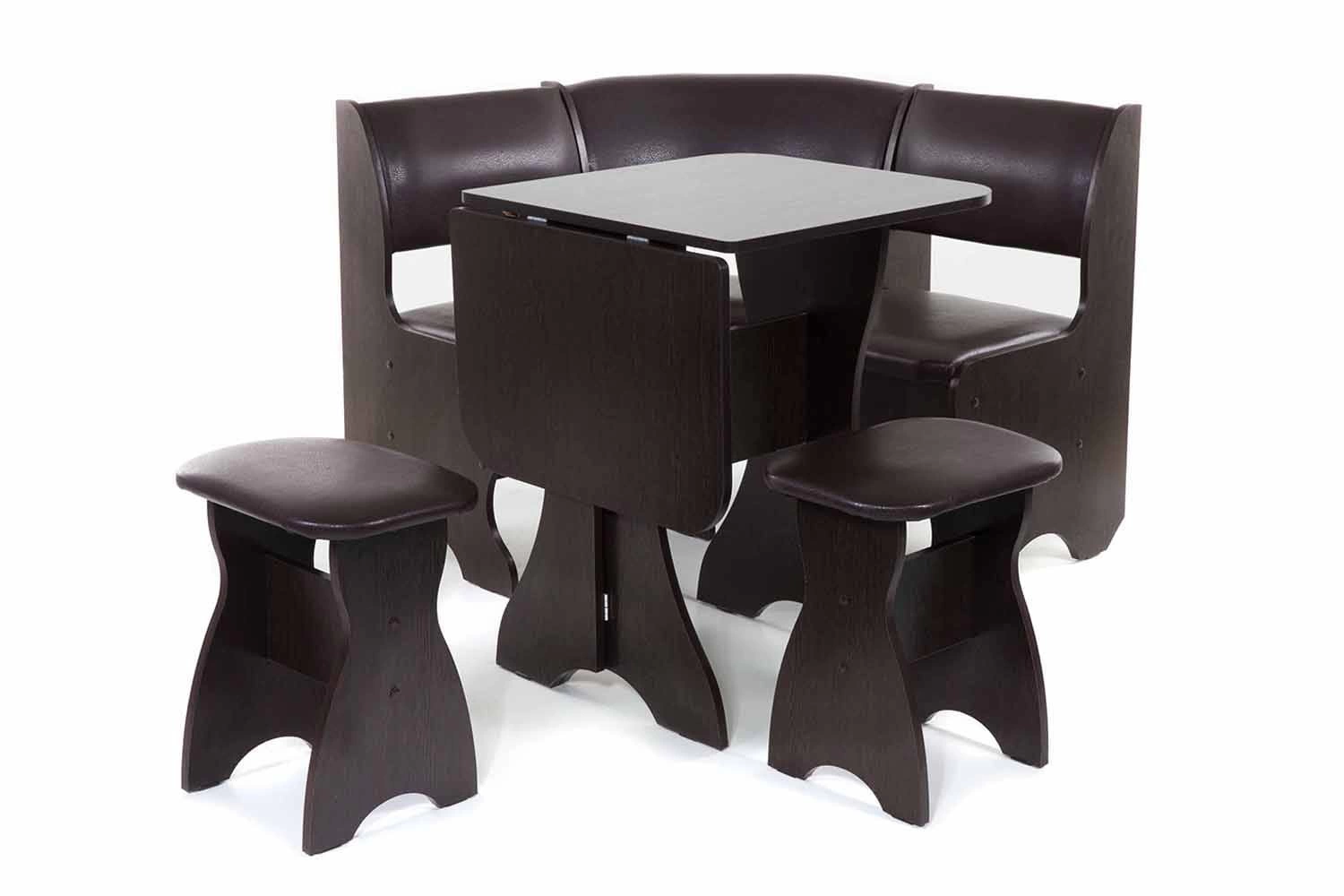Особенности уголка: С этим набором Вы легко организуете обеденную зону даже в самом небольшом пространстве. Диван имеет два вместительных ящика для хранения различных вещей. Столешница покрыта термостойким пластиком. Влагостойкие ножки. Размеры: Размер угловой скамьи: ш(1000х1000)хг500хв850 мм. Размер стола: ш625(1000)хг580хв750 мм. Размер табурета: ш380хг290хв460 мм. Уголок универсален - собирается как в левом, так и в правом исполнении.