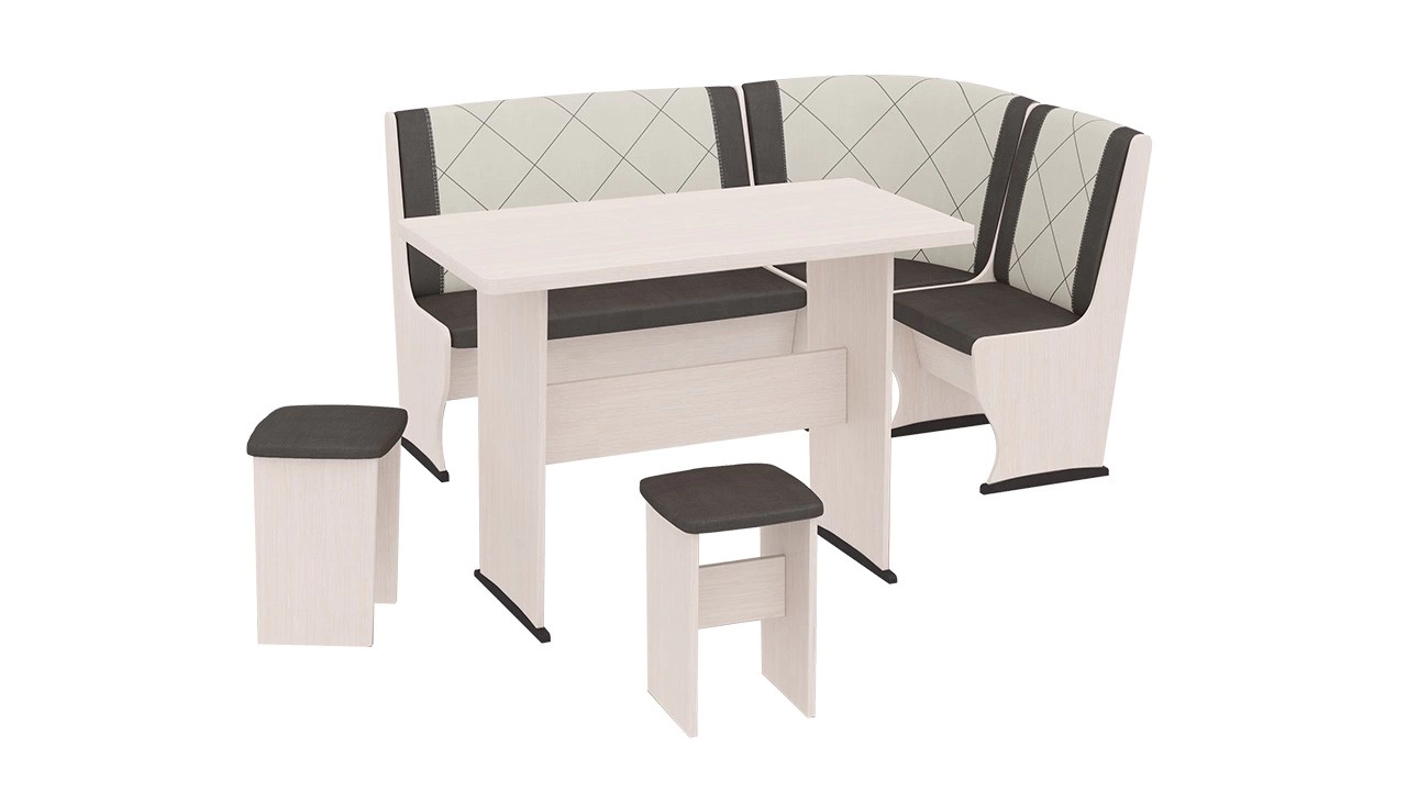 - Обеденная зона "Челси Т2" состоит из удобной угловой скамьи, практичного стола и компактных табуретов.